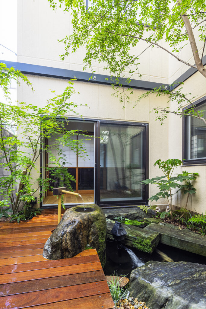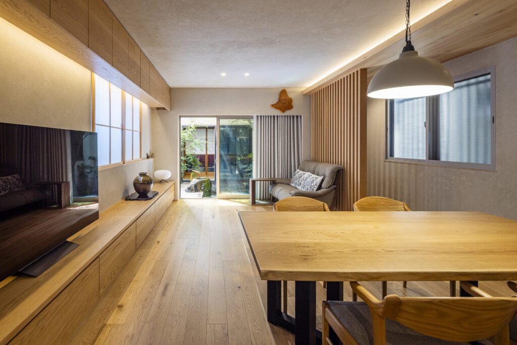 当時の設計者が意図したであろう住まいと坪庭との繋がりを新たな解釈によって再び結びつけました。