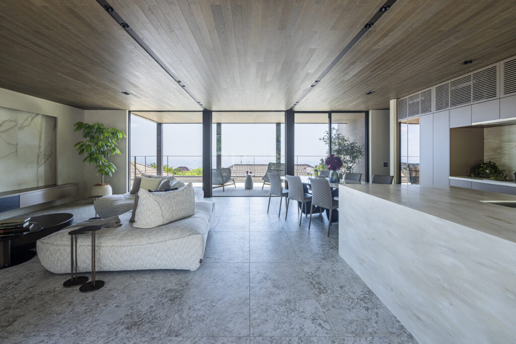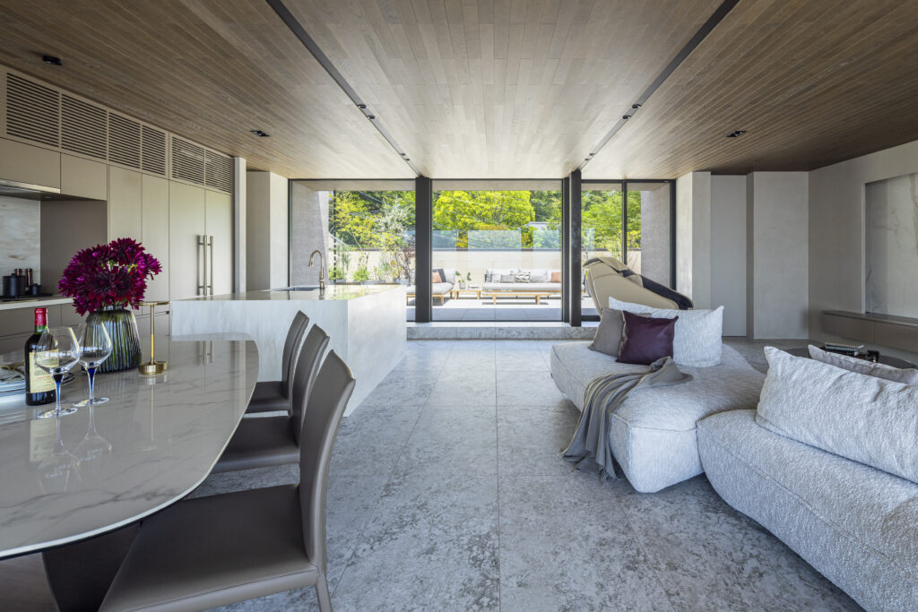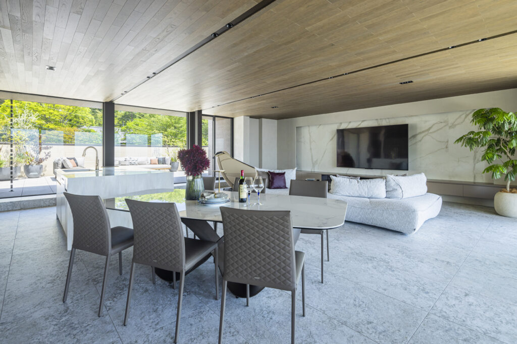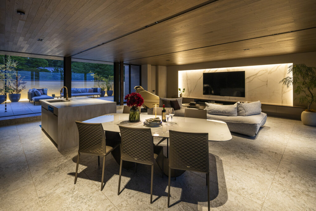 用途: 戸建て住宅(新築)面積: 422.25㎡建築地:兵庫県宝塚市竣工: 2025年北の山景と南の眺望を最大限に活かし、そして庭の既存樹を風景として取り込む計画。圧倒的な環境を日常の居場所として紡ぎだす住まい。